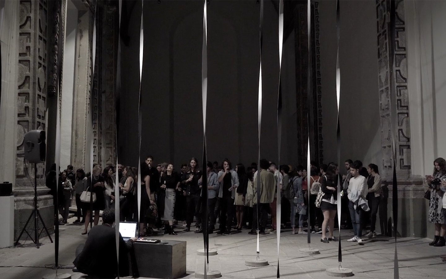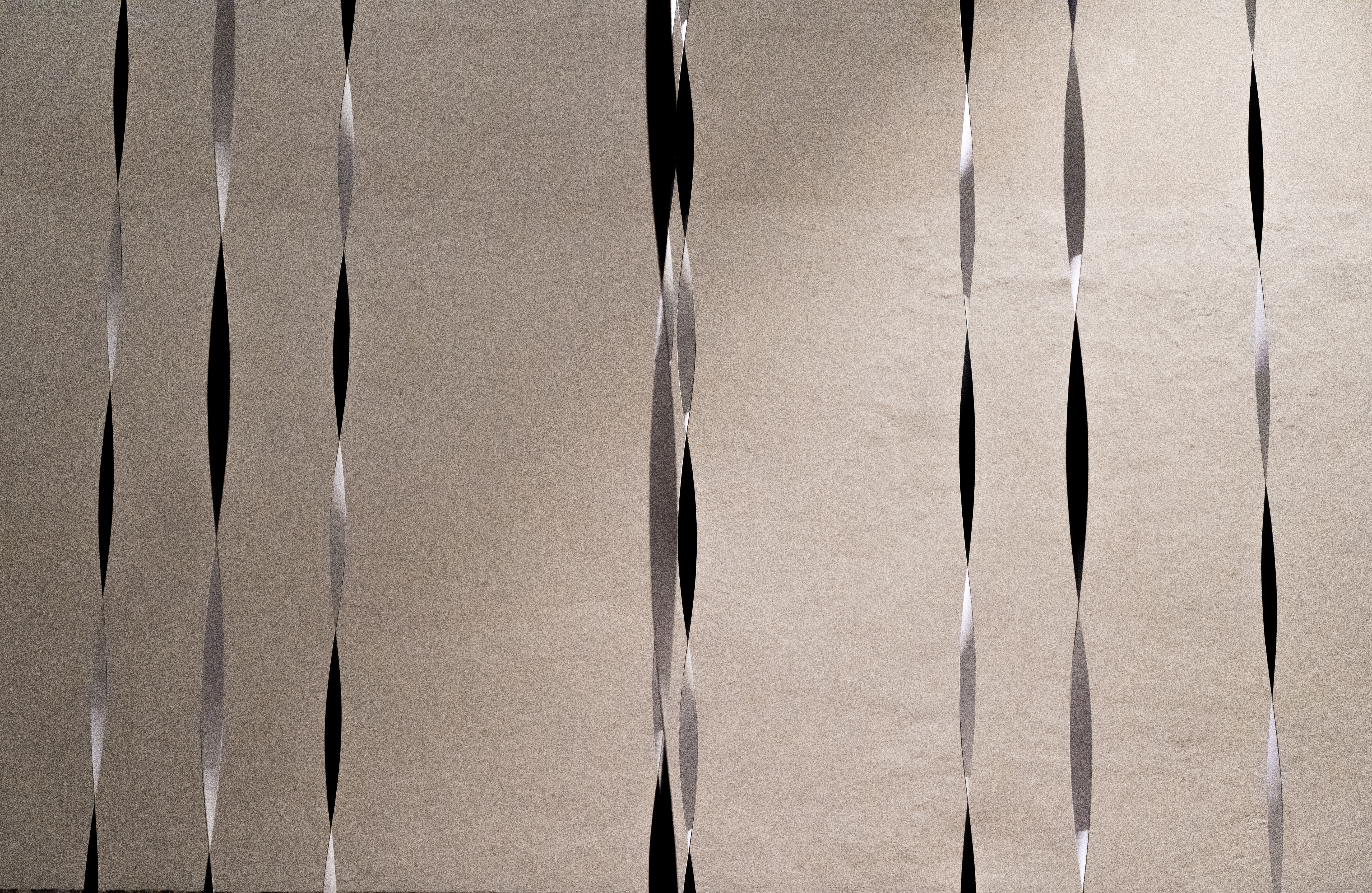Tensión Lírica is a series of sculptures and installations that invite you to experience the kinetic properties of materials. Cinta is the first intervention of the series, it is a visual phenomenon of ascent and descent that occurs during the twisting of a cloth tape. People can wander and explore the installation in a sound environment that assimilates the movement to our imagination in order to live a synesthetic experience where tension, visual and sound will form one. Part of my inspiration to create are the infinite possibilities offered by the virtual era ... Softwares have reached amazing levels of complexity thanks to which any virtual scene can be generated, with its own textures, movements and sounds. Just as science fiction inspired great engineers to create new inventions, renders are a source of imagination that pushes me to explore and manipulate the elements that exist in our reality in order to take them to the limits of their physical laws.